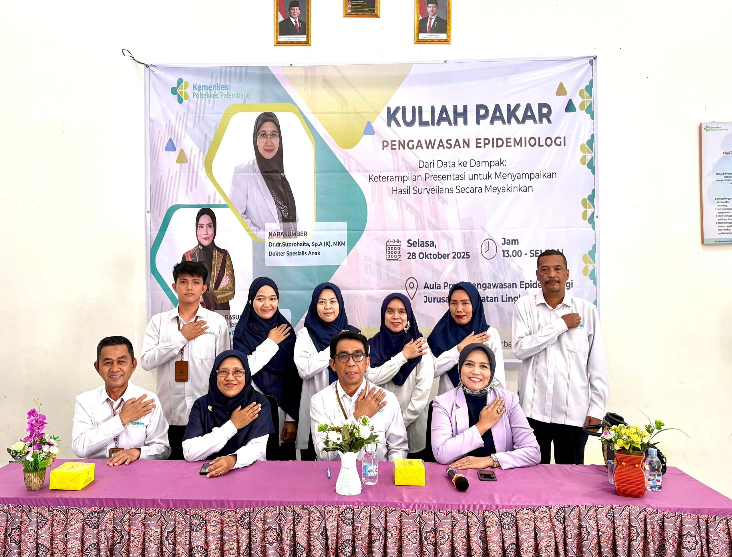 Palembang, 28 Oktober 2025 – Program Studi Pengawasan Epidemiologi, Jurusan Kesehatan Lingkungan Poltekkes Kemenkes Palembang, kembali menyelenggarakan kegiatan Kuliah Pakar dengan tema “Dari Data ke Dampak: Keterampilan Presentasi untuk Menyampaikan Hasil Surveilans Secara Meyakinkan”. Kegiatan ini berlangsung pada Selasa, 28 Oktober 2025 bertempat di Aula Prodi Pengawasan Epidemiologi. Kegiatan ini dibuka langsung oleh Ketua Jurusan…